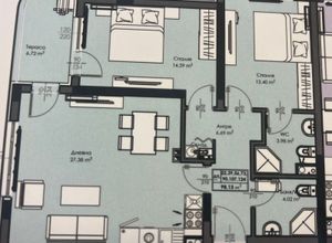 Предлагаме тристаен апартамент с гледка към двора! Площ е 98.13 м2. Жилище се намира на 5 етаж. Апартамент се състои от: просторен хол с кухня, 2 спални, 2 бани, входно антре и тераса. Има возможност за разсрочено плащане без оскъпяване до 3 години! За Вашето удобство има прекрасна възможност да закупете и подземно паркомясто към апартаменте за отделна цена.