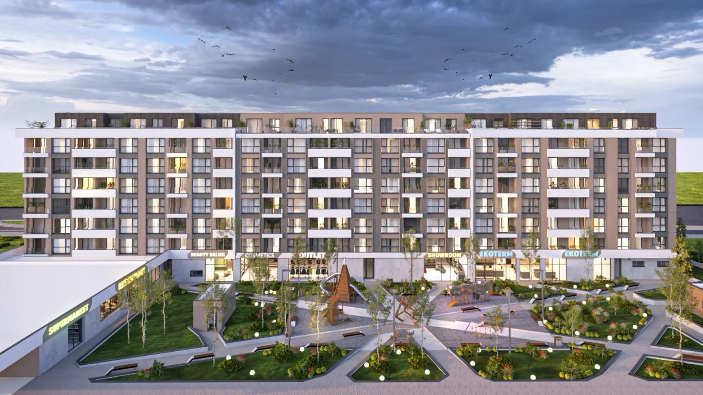 Тази сграда задава облика на целия комплекс - модерен, зелен, социално активен район, който обединява удобства, инфраструктура и концепция за качествен живот.