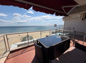 Предлагаме изключителен двустаен апартамент, разположен буквално на самия морски бряг, върху златистия пясък, с фронтална и напълно открита гледка към морето.